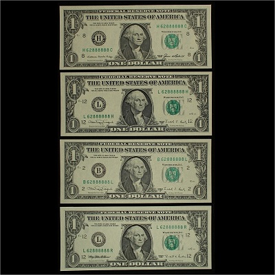 1985, 1988 & 1995 $1 Near solid SN62888888 four bill set Ch/Gem unc.