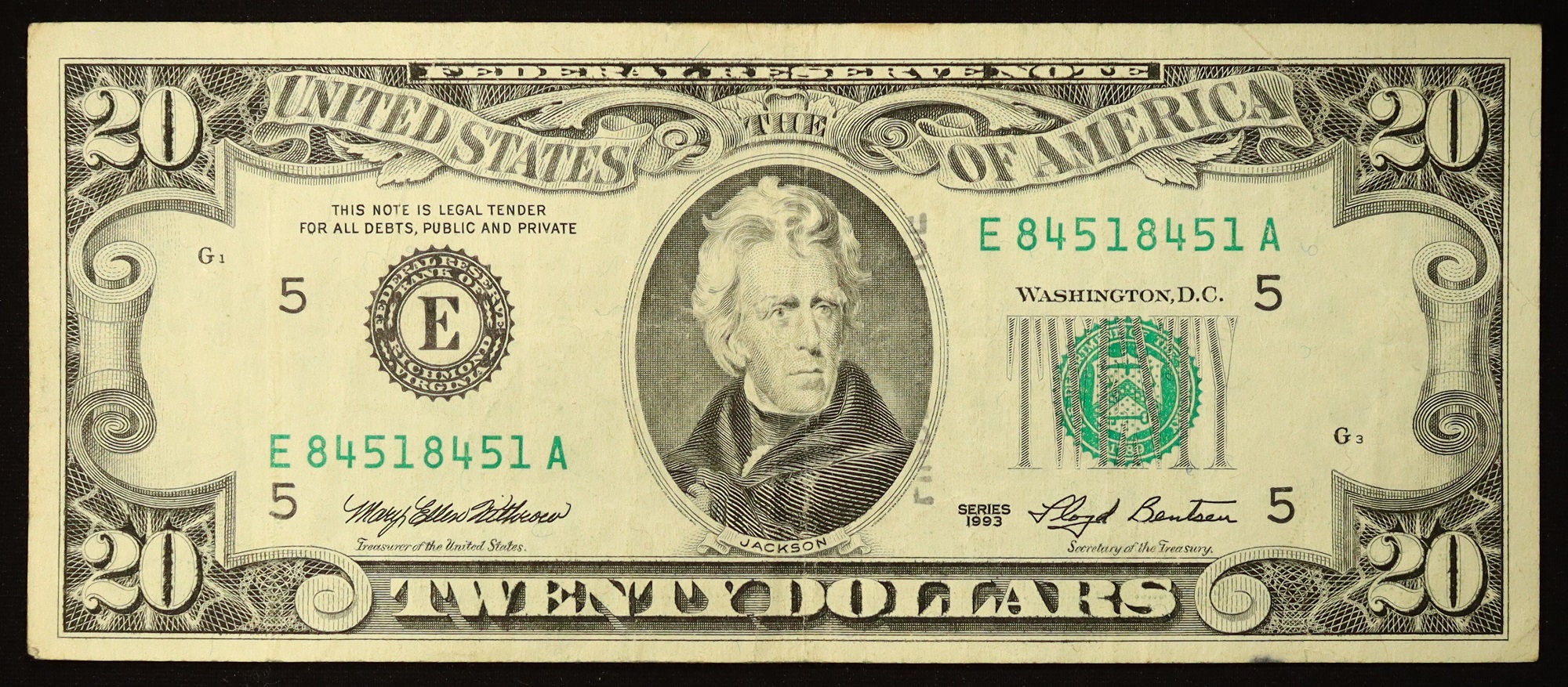 1993 $20 Federal Reserve Note Richmond District Repeater 84518451 Lightly Circulated